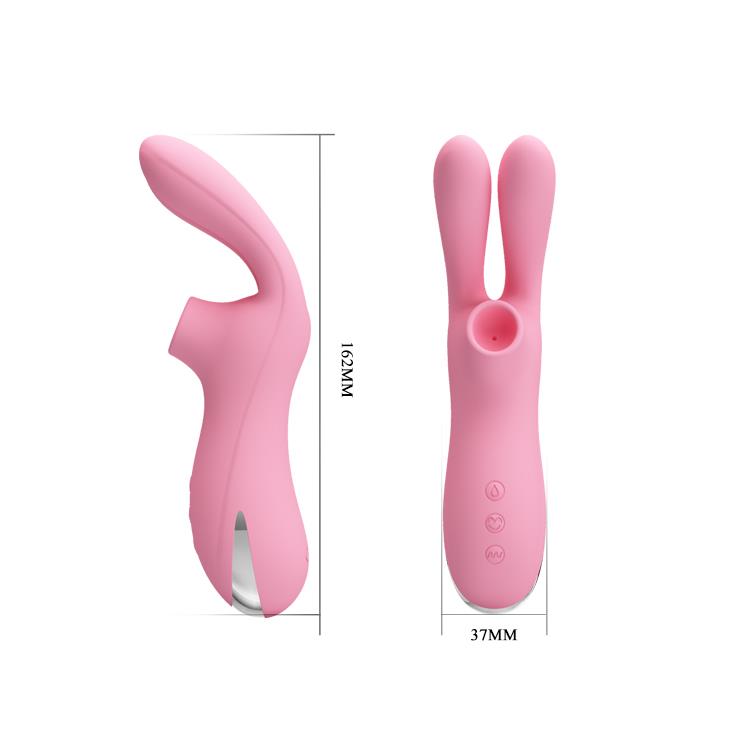 Pretty Love Ralap to prawdziwe 2 w 1, ponieważ ta zabawka erotyczna składa się z dwóch stref roboczych: wylewki ssącej do stymulacji próżniowej i delikatnych króliczych uszu do wibrujących pieszczot. Symulator seksu oralnego Pretty Love Ralap zapewni ci błogie chwile stymulacji próżniowej delikatnej łechtaczki dzięki zmysłowemu i intensywnemu efektowi ssania i próżni. Bezdotykowe działanie na łechtaczkę z pewnością doprowadzi cię do silnego i żywego orgazmu łechtaczkowego, który jest również wspomagany przez wibrujące uszy. Dzięki elastycznym i bardzo delikatnym uszkom możesz stymulować łechtaczkę oddzielnie, niezależnie od stymulatora próżniowego, a także włączyć wibracje podczas pieszczot ssących. Ponadto, jeśli uruchomisz elastyczne wibrujące uszy wewnątrz pochwy, uzyskasz jeszcze bardziej niesamowite i zmysłowe doznania ze stymulacji wewnętrznych stref erogennych. Ta zabawka erotyczna daje ogromny wachlarz możliwości użycia, więc wykorzystaj je wszystkie. Pretty Love Ralap to symulator seksu oralnego, który jest gotowy dać ci niezapomnianą przyjemność próżniowo-wibracyjną i pozwolić ci uświadomić sobie radość i zmysłowość orgazmu łechtaczkowego.
