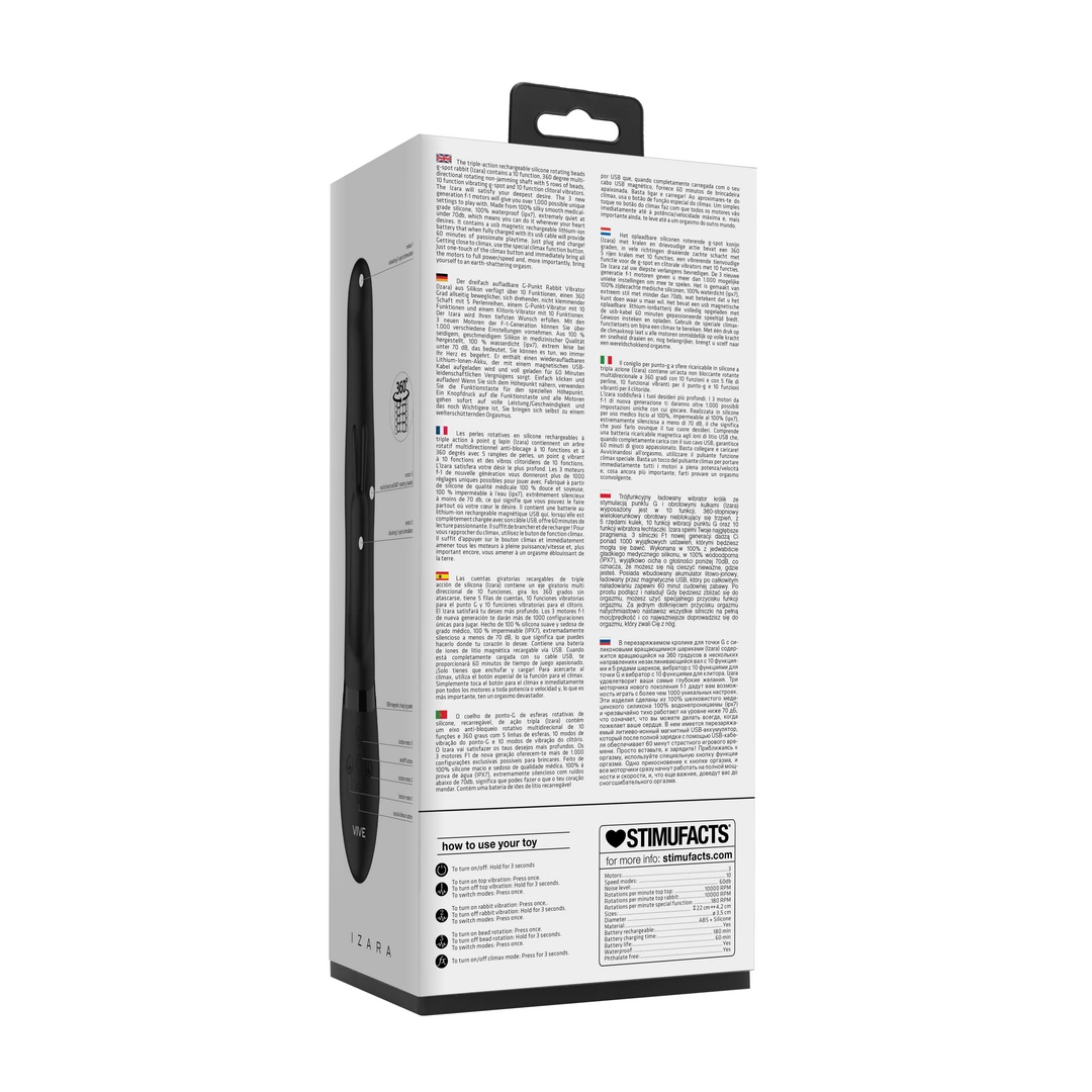 Izara jest wyposażona w trzy mocne silniki F1 nowej generacji, które pracują w idealnej synchronizacji, tworząc ponad 1000 możliwych kombinacji wibracji i ruchu. Główny trzon obraca się o 360° w wielu kierunkach dzięki pięciu rzędom wirujących kulek, zapewniając głęboki masaż i stymulację punktu G. Jednocześnie stymulator łechtaczki delikatnie pieści zewnętrzne strefy erogenne, potęgując orgazm.