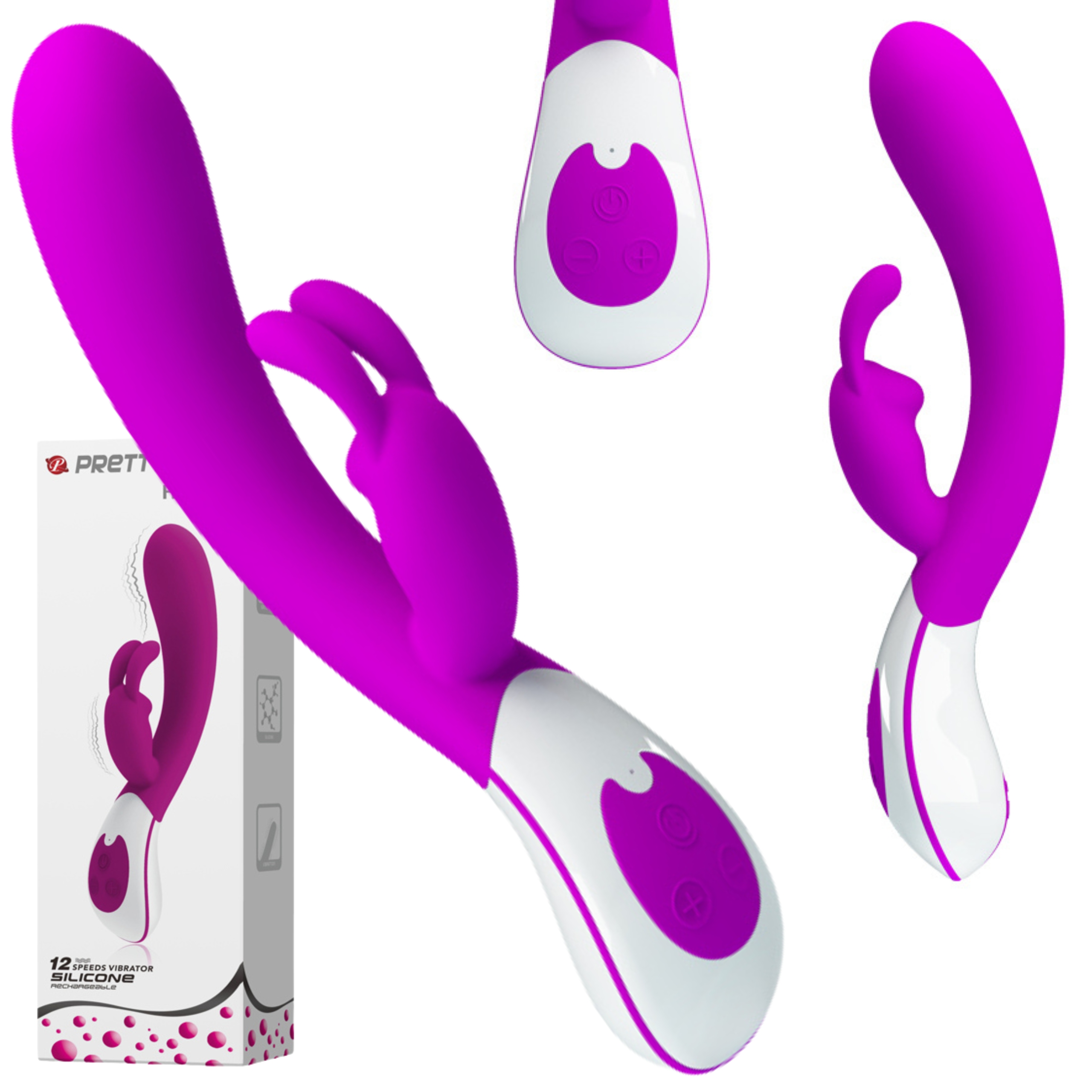 Pretty Love Harlan располагает 12 режимами вибрации, которые переключаются кнопочками на основании. Верхняя кнопка отвечает за включение и выключение игрушки. Также для работы вибратора Вам не понадобятся батарейки, достаточно подключить игрушку к сети либо компьютеру с помощью usb-провода, включенного в комплект.